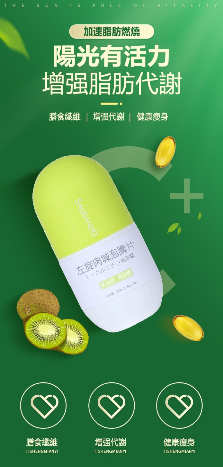 日本SAUSAND'O左旋肉堿泡騰片純天然動植物提取成分,是一種可以纖體健康瘦身產品,左旋肉鹼可以幫助燃燒脂肪和促進減肥,酵素減肥藥有效減少乳酸在肌肉細胞中的堆積,能加速脂肪燃燒,特別適合人們配合做有氧運動來減脂,酵素減肥藥的補充品。